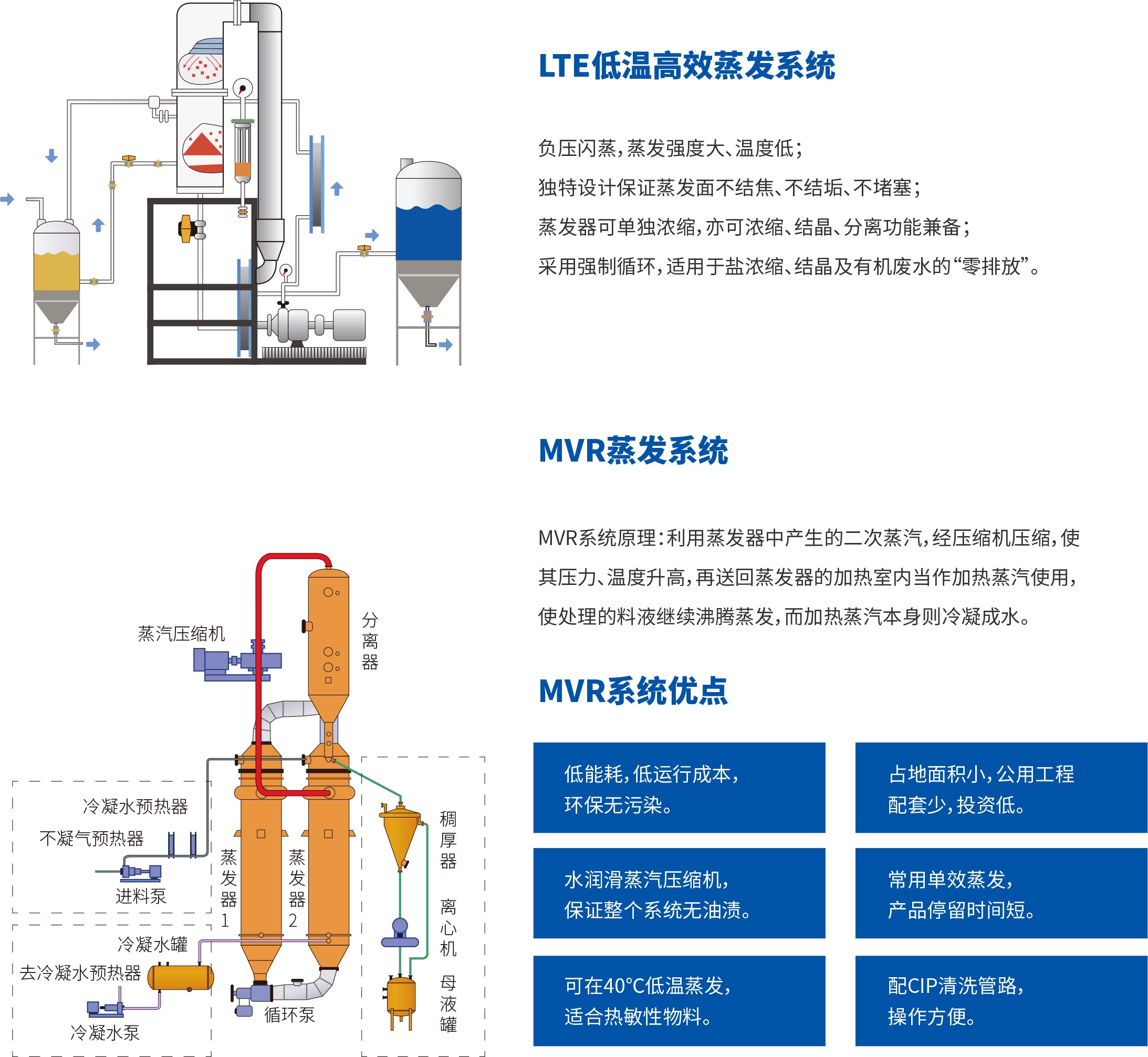 通过中水回用装置回用部分水后的浓盐水,具有高盐分、水质复杂、高有机物、高硬度、高含硅等特点,排出将对环境产生较大影响,协同水处理技术有限公司通过“浓盐水高倍回用+高浓盐水高效提纯+高盐水蒸发结晶分盐”的组合工艺,实现了废水零排放,结晶盐达到工业盐标准,实现资源化利用的目标。