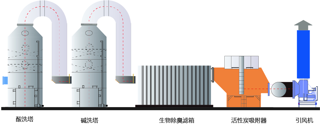 技术优势:运行能耗低、具有一定的抗冲击负荷能力、污染物去除效率较高,对NH3、H2S及其他恶臭物质等均有较好的降解效果、可制作模块化产品,根据现场条件调整安装尺寸